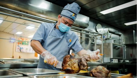More than 600 well-trained and experienced chefs and personnel work in the harsh marine environment.